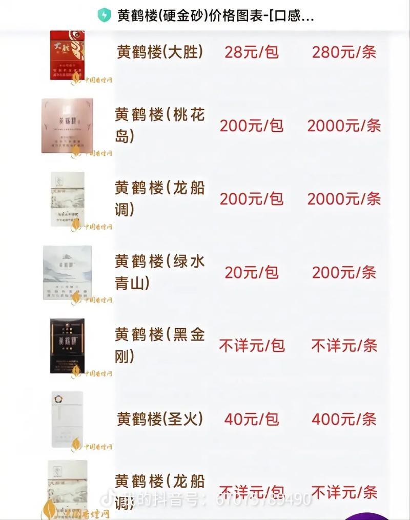 黄鹤楼香烟的价格因产品系列、规格、地区等因素而有所不同。以下是一些常见黄鹤楼香烟的价格信息: