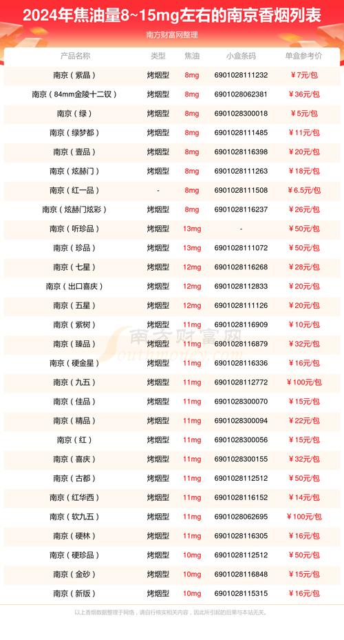 南京烟,作为中国烟草行业的知名品牌,以其独特的口感和品质赢得了广大消费者的喜爱。本文将从多个维度详细介绍南京烟的价格,帮助消费者更好地了解这一品牌。