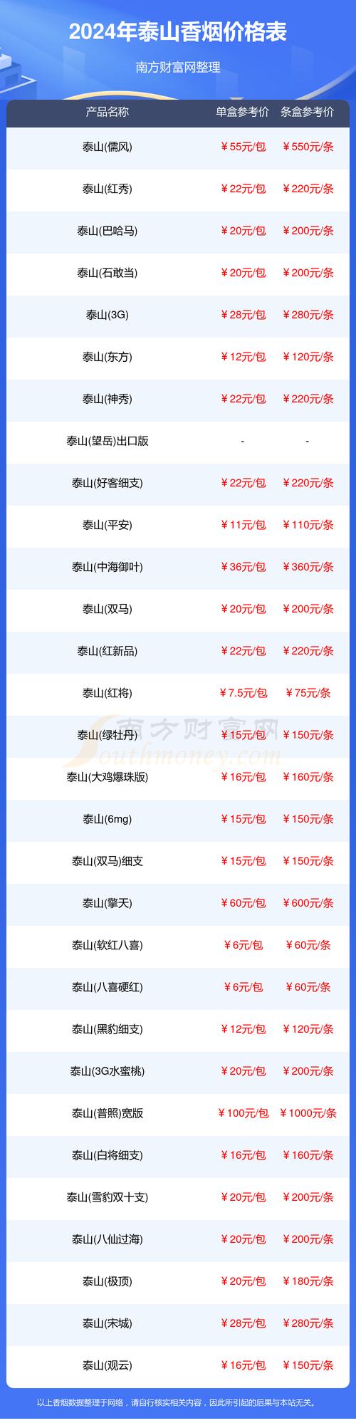 泰山香烟价格表:探寻泰山香烟的多维度魅力