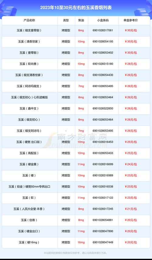 玉溪烟价格表,探寻高端烟草的韵味与价值 -欧洲杯网址
